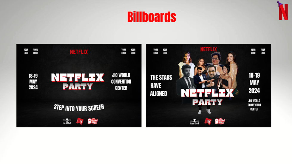 This project began as a visionary pitch for a Netflix-themed event designed to bridge streaming culture with an immersive experience. Inspired by the evolving entertainment landscape, the concept aimed to create an interactive space for fans to engage with popular Netflix originals through installations, screenings, and live discussions. The pitch covered venue selection, partnership strategies, and experiential design. Its execution into a real-life event underscored its feasibility and impact, demonstrating a keen understanding of entertainment branding and audience engagement.